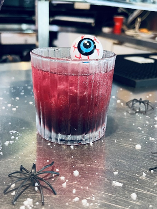 If you cant get lychees or blueberrys another good garnish is a "eyeball ping pong ball" Lots of supermarkets and shops sell them around halloween.
